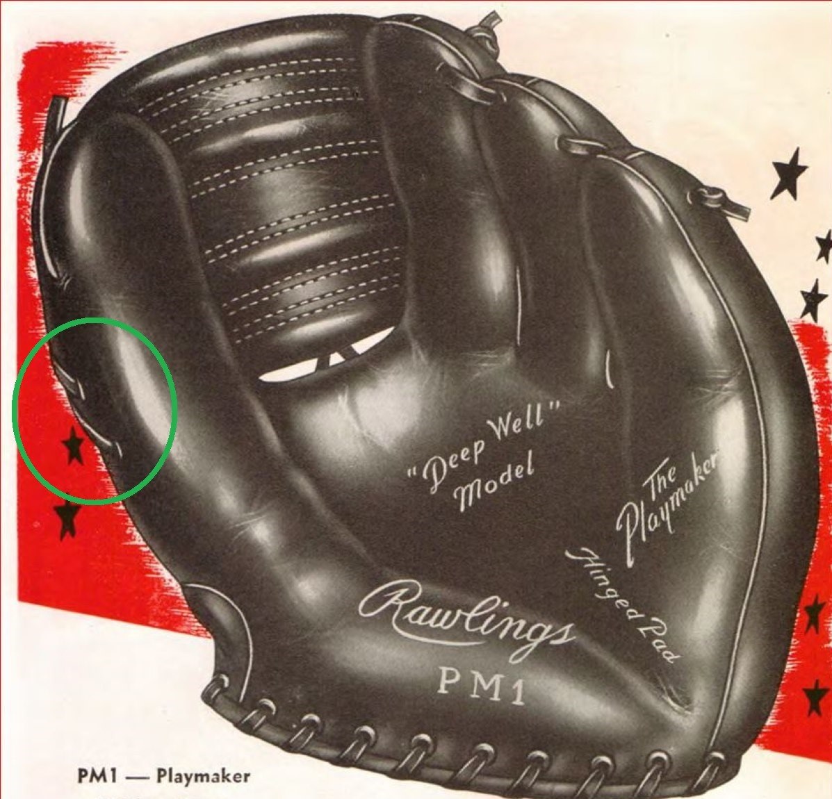 It wasn't until 1954 that a glove featured both patent thumb and pinky loops in the newly designed Mickey Mantle model MM.