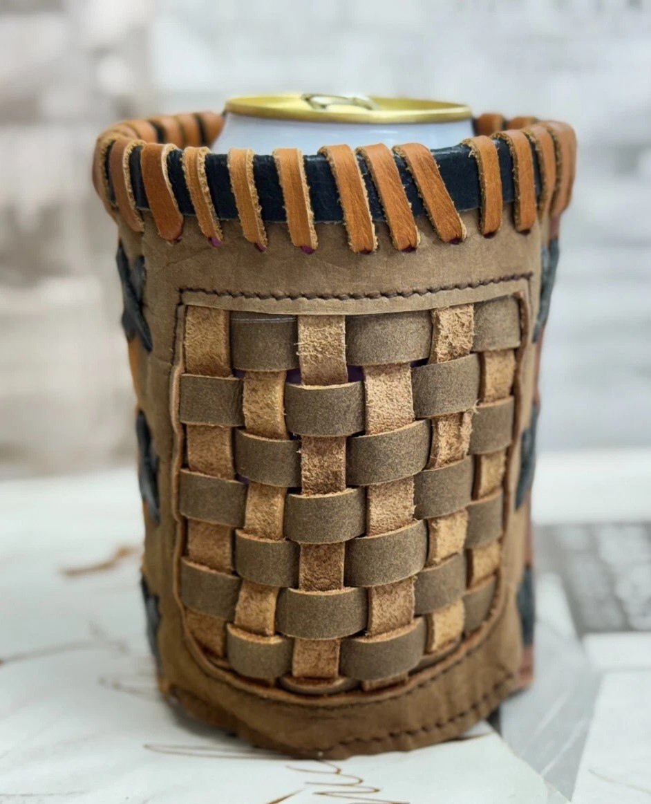 Another use for the basket web. A leather beverage holder.
