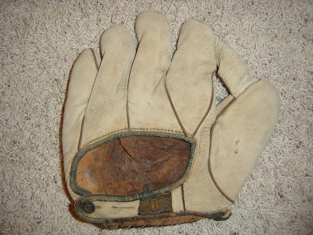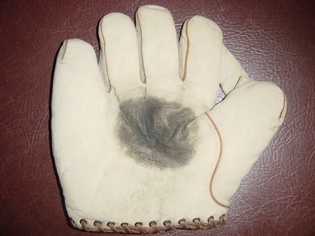 Needing examples, I went over to the vintagebaseballglovecollector website and looked under white sewn webs (which over 70% have been cleaned in some way) and copied a few. Here are a couple examples of gloves I know that have been cleaned by different collectors. These gloves are no longer with their original owners/cleaners and are probably keepers for the people who purchased them or traded for them. I am also certain that these owners would have a pretty high demand for them if they were available. Needless to say, I’m all about polishing a diamond in the rough and if the glove has the potential go for it!
