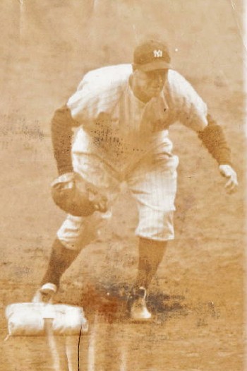 I thought this photo I came across recently was pretty amazing. Take a look at Lou's glove (basemitt). This has got to be from the 30's. The web clearly extends the glove's pocket beyond the thumb and finger sides the way the rolled lace web would (maybe eight to ten years down the road). Looks like Lou might be heading into foul territory to retrieve an errant throw. Any thoughts about this mitt? The wrist strap reminds me of one I have on a Lou Fonseca fielder's glove. But this must be a top quality glove. I wonder who made it?