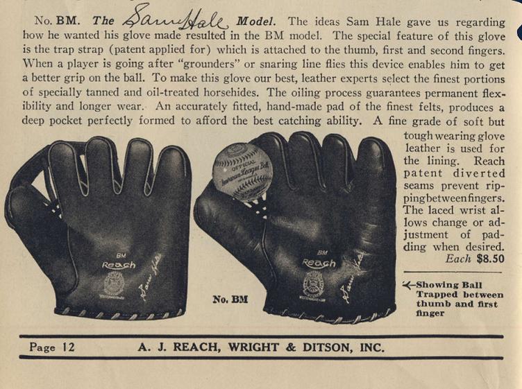 In addition to the Spalding glove, Reach, Wright & Ditson made a "Sam Hale" model with the same patent design. It was their top of the line model as well.