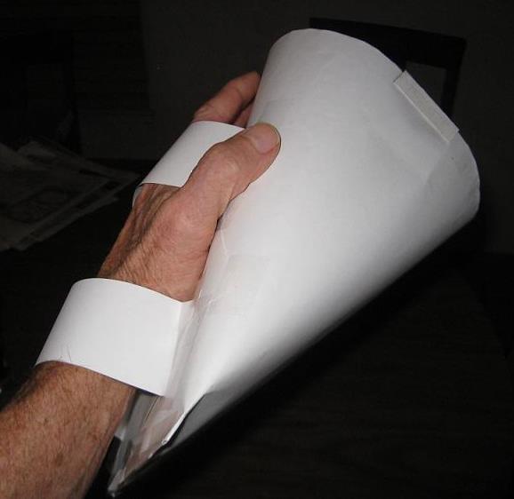 I came across this odd invention in a book called "Banana Bats and Ding-Dong Balls". No mitt needed with this baby! Thought I'd add it to the list of oddball catching equipment.