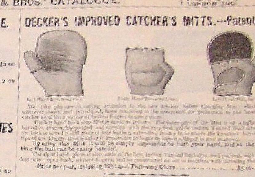 - catcher with the Decker mitt and throwing glove circa 1890