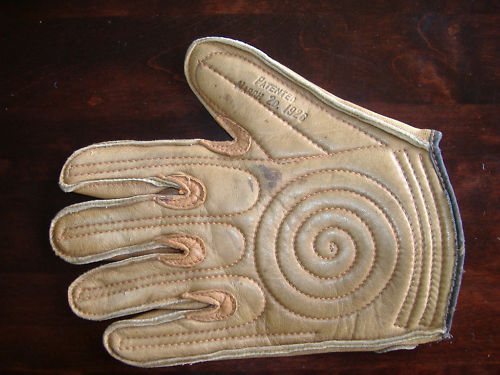 Remember more recently on stopping "ball spin" in the glove, SSK's attempts with its "dimpled palm" little holes in the leather. Not sure the earlier or the latter efforts worked to any great degree.
