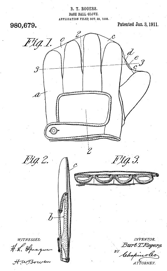 Yeah, I got a little sideways on this one. The Pita Pocket style glove was a Ted Kennedy invention. The Burt Rogers patent drawing refers to an invention from Victor Sporting Goods. They called it the glove/mitt. it was a combination of a glove pattern on the back with a mitt leather facing. The front facing was attached at the perimeter and bridged the finger stalls. The front facing was loose in the center and is why many of the examples in the hobby are heavily creased on the front. Burt Rogers designed it that way so the finger stalls would stay flexible and the facing would have a lot of give to it.