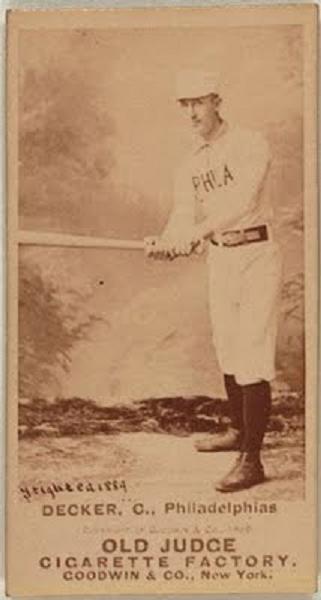 here is an Old Judge photo of Harry Decker as a member of the Philadelphia Athletics of the National League circa 1887-1889.
