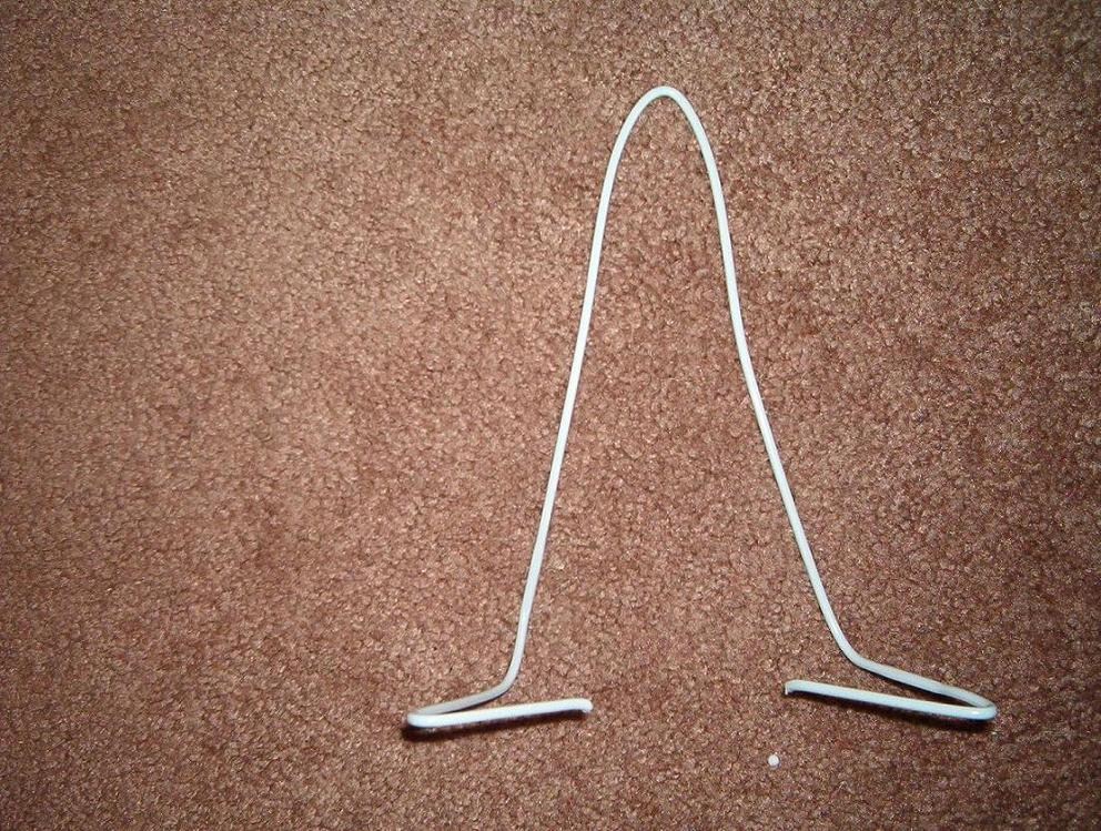 Metal coat hangers. 10 for a dollar at Dollar General. You can't beat 10 cents a piece. Bend them in a V-shape, insert the V into the middle finger, then bend the two ends straight back and make a V out of each to form a base.