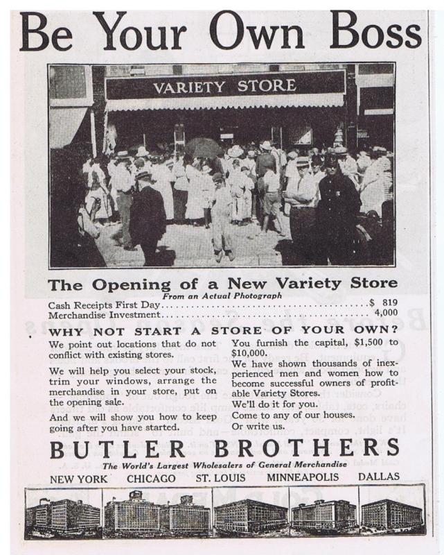 here is a full page from a 1940's Pennant catalog. I contacted the ebay seller and they confirmed "Butler Bros" is printed at the bottom of the catalog
