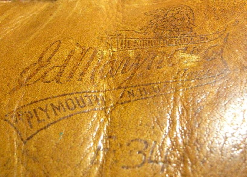 The stamped picture pocket of this Ed Maynard glove is interesting in the reference it makes to the D&M Co. Instead of "The Lucky Dog Kind", the glove is stamped with Maynard's own variation, "The Sign of the Little Dog".