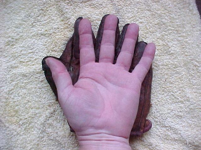 Just picked up this Spalding one inch web childs glove that measures 7 inches tall and have a few questions. I was wondering what the value of this glove would be and if it was worth to get the lining repaired. The leather is in good codition but the wrist band is starting to flake. The lining has a few holes and appears to be weak. Any help would be appreciated.Thanks!