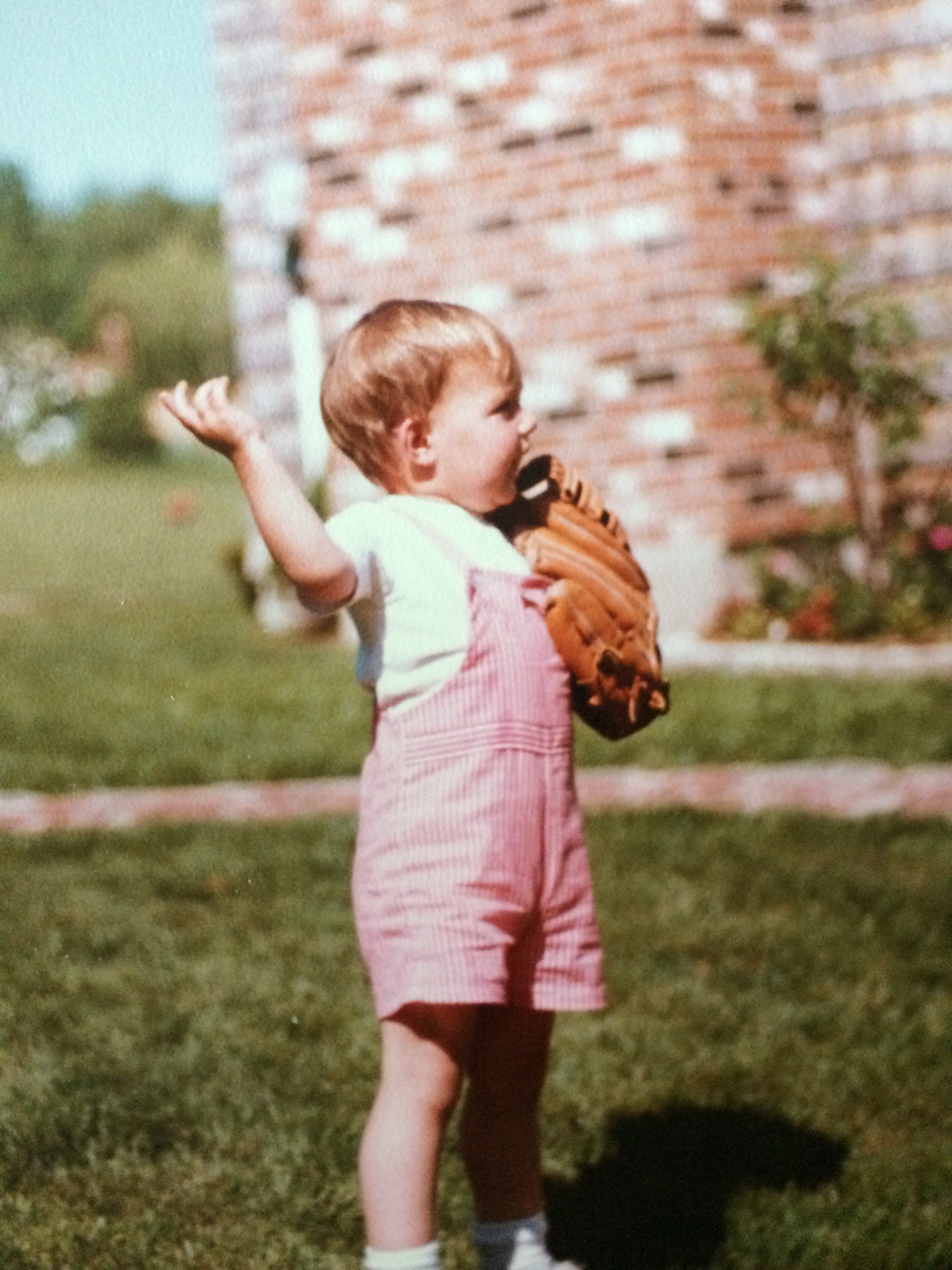Going through some family pictures recently and came across some of me as a youngster with glove in hand. Thought it would be fun to see if anyone else has pictures from their youth playing with or holding a glove. I have one on my site with my dad and I but this one is the earliest I could find - June of 1980, just turned two in April so about 26 months old. Glove is a Nokona but I don't remember the model and unfortunately left it outside as a kid and it was never to be seen again. And yes, I'm aware of the hilarity of the outfit so no need to point that out! 8)