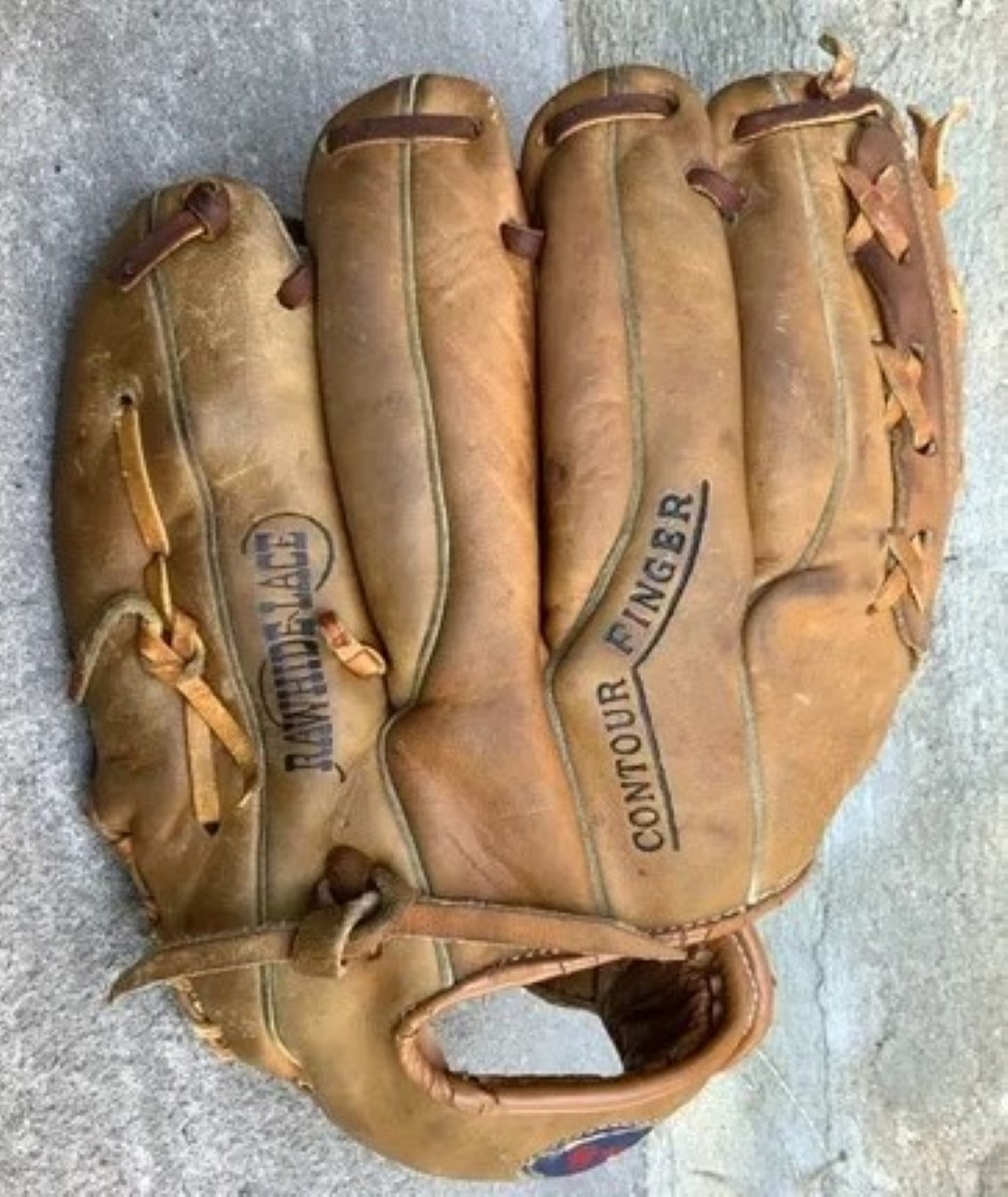 A 1967 Ted Williams Personal model 1666. An all leather well built glove. It has a web reminiscent of the Sonnett "Bat Web" Lightning model.