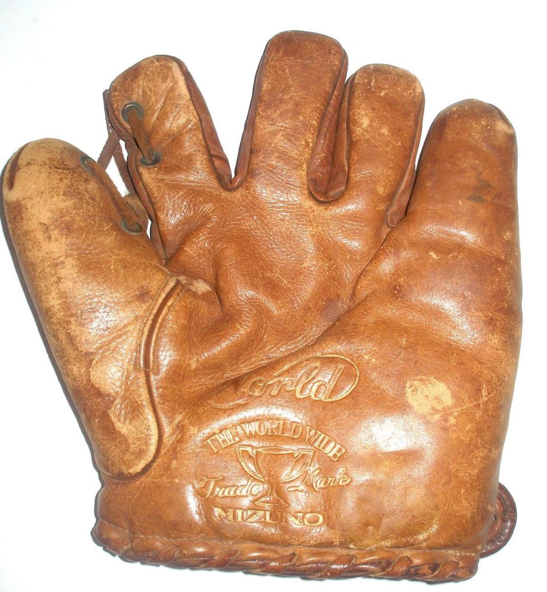After the war leather hides were hard to come by in Japan so Mizuno made some of their gloves predominately with fabric.