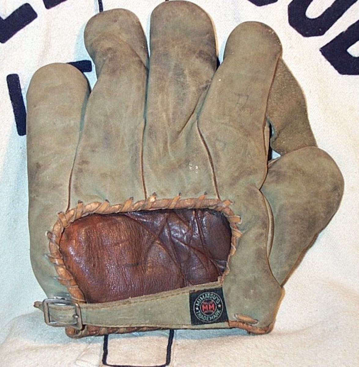 A circa 1920 Mimatsu glove. Formed in the 1880's, Mimatsu was one of the first sporting goods manufacturers in Japan.
