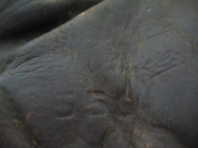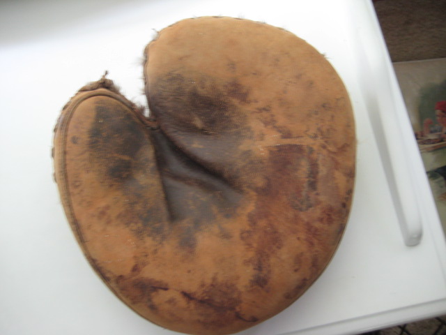 The first glove I bought was a Spalding catchers mitt Player's Choice Model# S. It's in pretty good shape the tag is faded but intact and the buckle strap is strong and not detached. The leather is a little dry but I bet a good conditioning will really bring it back to life. One weird thing is that it seems to be shedding feathers. Is this something the manufacturers filled the gloves with back in the day or do you guys think it was later addition? By the way Brett I bought this off a guy named Phil and he told me to tell you Hi.