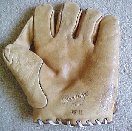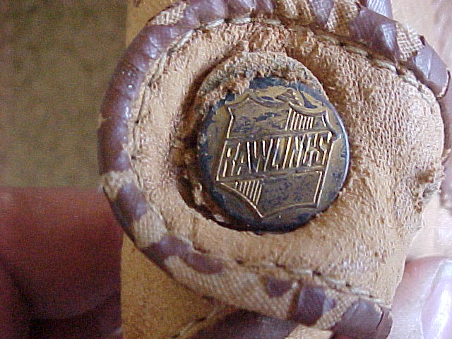 I just picked this adoult size Rawlings glove up for my collection and was hoping somebody could give me some info on it, I would like to know what year it was made and what does the initials MF mean under the Rawlings name. The initials appear to have been put on at the factory. The glove is just in incredible condition with just signs of very light wear. Also what would you think the value of this glove is. Any help would be appreciated.