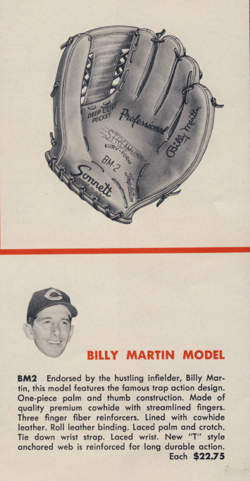 Found this Sonnett glove at a flea market yesterday. It had been on my want list for a long time - very unique web style from the 1960 catalog. Glove is in decent shape - wish the tag was better but beggers can't be choosers. It's a BM-2 model Billy Martin. Much more fun finding this at a show than on eBay.