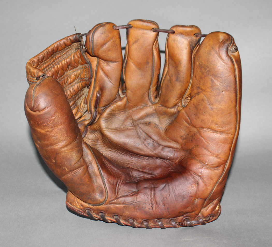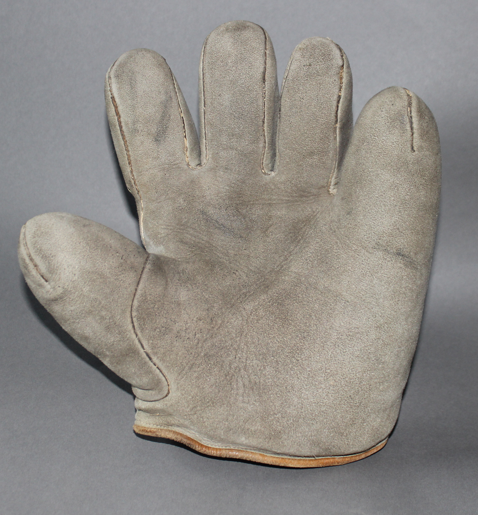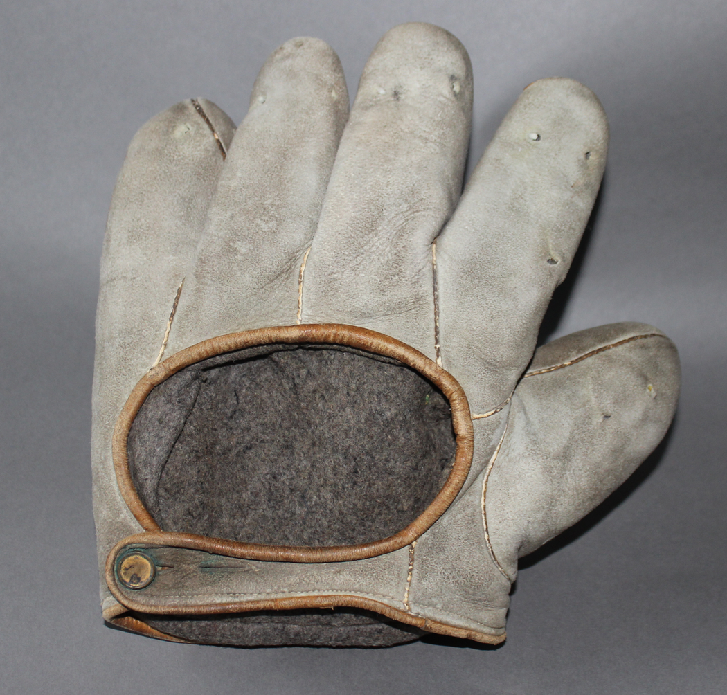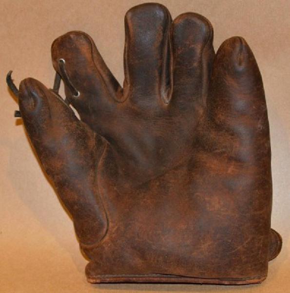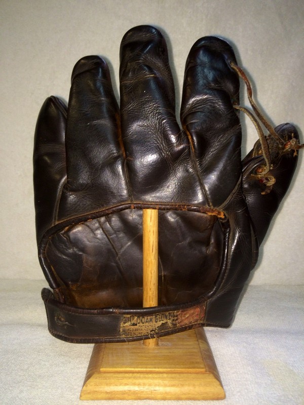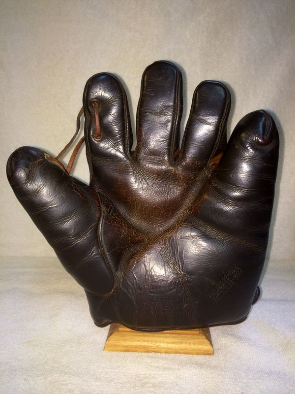 mikesglove wrote:I posted photos earlier of two circa 1949 MacGregor Goldsmith "Snare" base mitts. They are "trapper" style with an interlocking tunnel webbing. I had been on the lookout for an early version and this Goldsmith Micky Heath model is a nice one. It is circa 1933 and stamped "The Snare" on the thumb. It is more of an "oven mitt" look and the webbing is wildly different than my MacG versions. The web lacing is really intricate through the vertical tunnel. It is not too much of a leap to see the "Claw" base mitt design coming out of this. Base mitts can be a good sign post for where fielders glove designs are headed. I can see the T-web and "Trapeze" gloves evolving out of these base mitt innovations.