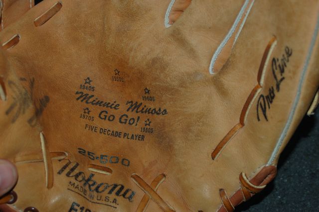 Just found this for $7.00 at a garage sale. Nice Nokona F100 Minnie Minoso mitt, Pro-line model (25-500). Minnie was a five decade player and played his last game in 1980. It says "five decade player" on the mitt, so I believe it would be a 1980 (or soon there after) glove. It is autographed by Minnie himself who I found a lot of interesting history on. Trying to figure out a value for the mitt and don't know where to start, what do you think? Thank you!