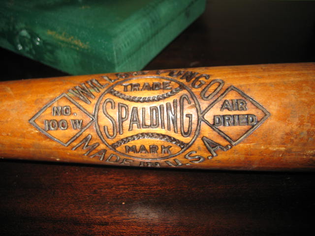 Low and behold I find a sweet lefty Reach basemitt, a massive Spalding willow fungo bat?, and a VWD canvas tennis racket case.