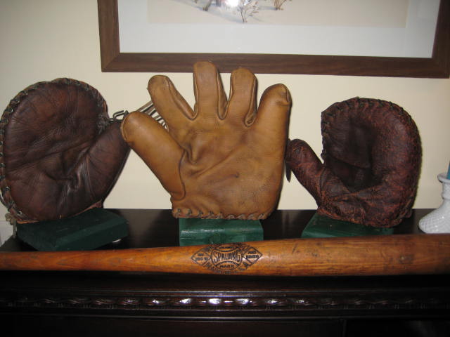 In the hour and a half of running around I managed to find a huge buckle-back Reach glove(when I got home and cleaned it J. Vosmik appeared), a double buckle Stall & Dean basemitt, and a pair of near mint wooden 2lb Spalding dumbells. So completely soaked and frustrated my wife(umbrella) and I(nothing) decide to go to an antique mall we saw on the way.