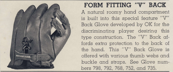 It's been awhile since I've added some nice pieces to my collection but this month has been kind. First up is an OK MFG Co. model 752 glove that was on eBay. When I took this out of the package I was even more excited and then when I put my hand in, I didn't want to take it off. It's definitely one of the nicest, early OK models in my collection. I have the corresponding catalog literature to go with the glove.