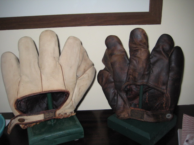 Very interesting stuff and the way he told me he picked them up was at local auctions, flea markets, and garage sales. I ended up buying these two gloves off of him and plan to go back to pick up a couple more that I had to leave behind. After a very disappointing flea market season it was great to come across these two.