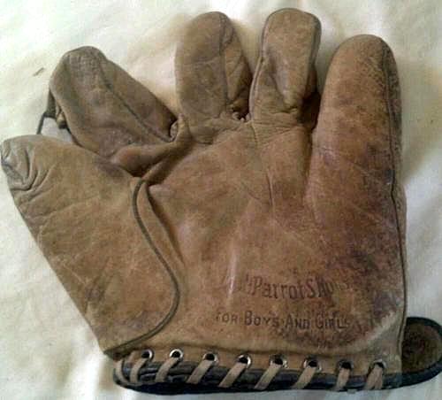 A 1930's Poll-Parrot glove. Glove is inscribed, "Poll-Parrot Shoes for Boys and Girls"