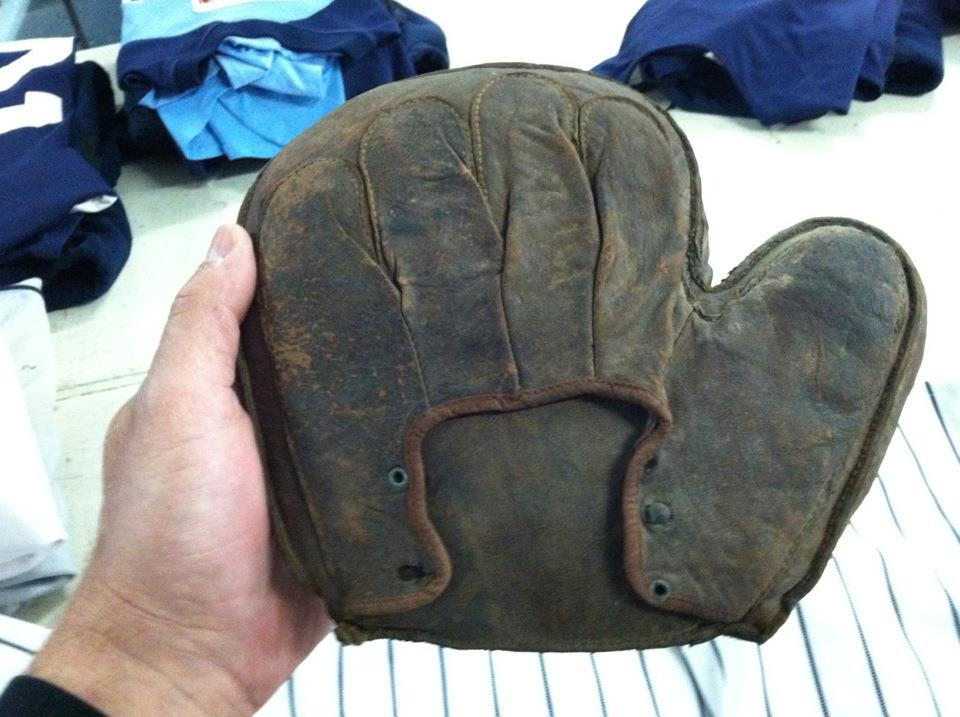 Hello all, My name is Ted Romanosky I'm an Equipment manager at URI. A friend of mine thought of me when she found this glove under an old stair well while remodelling her house in Newport RI. After a search on line I believe it to be a Decker Safety Catchers Mitt. I think 1890 as his patent for 1891 has a lacing around it.
