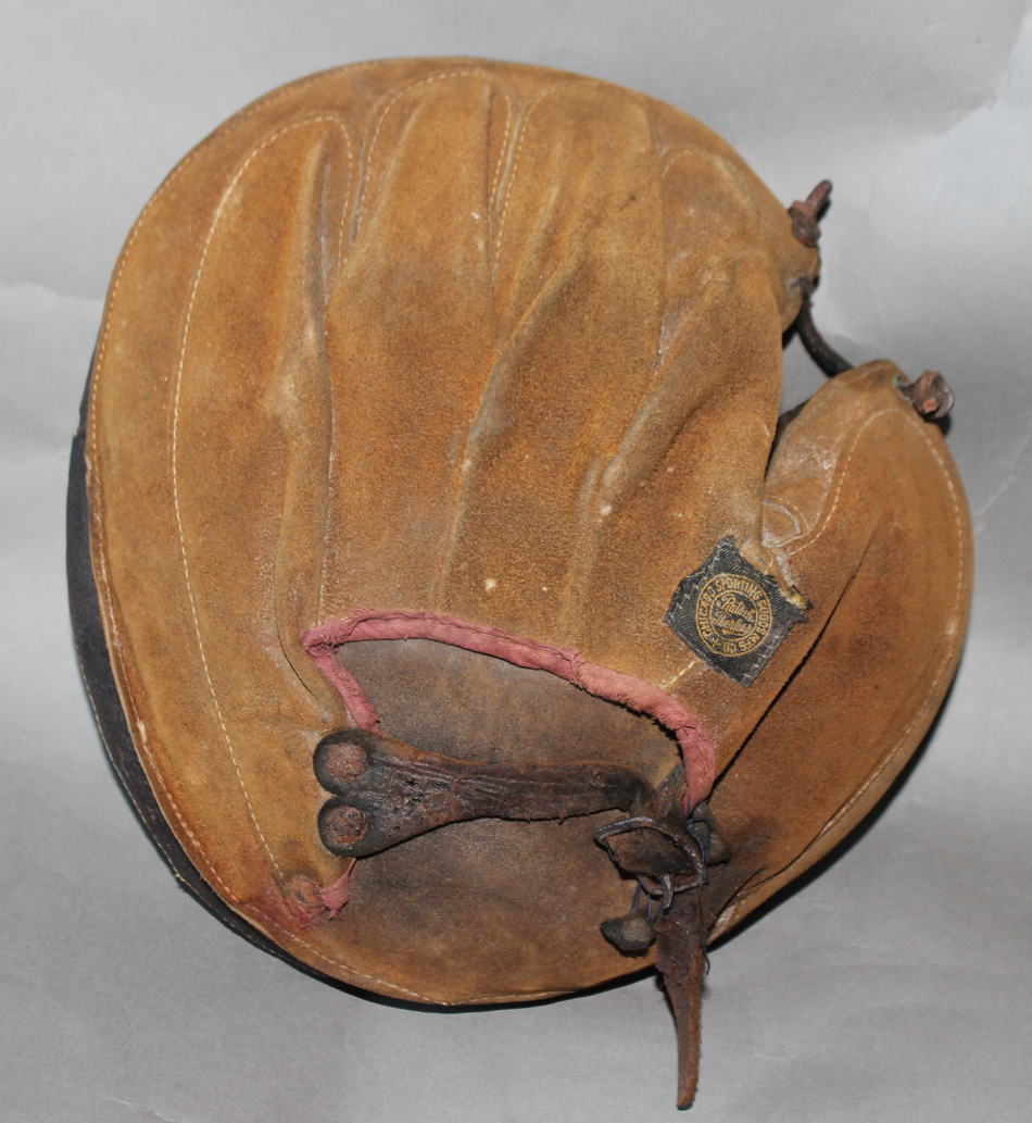 The last Brimfield Antiques show for the 2014 season was this past week. This show was very, very dry in turning up quality items. I always enjoy the hunt so it was fun to walk around and see what was being offered. Not many quality (or poor quality for that matter) sports items to be found. One of the things I did pick up that I found to be interesting was the the mitt pictured below. It is made by Ratsch Peerless and is a very thick suede leather. It's a midline glove but is a little bit different than models you usually come across from this era.