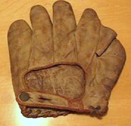 A 1940's glove of unknown mfg. sold for $107 on ebay. What sold the glove was the unique webbing similar to a "Rainey Trap" web. There looks to be an endorsement in the pocket but I couldn't make it out. Pretty cool looking glove.