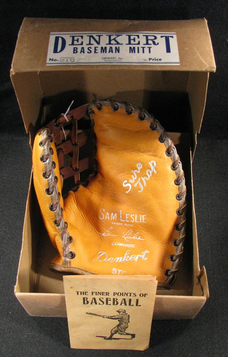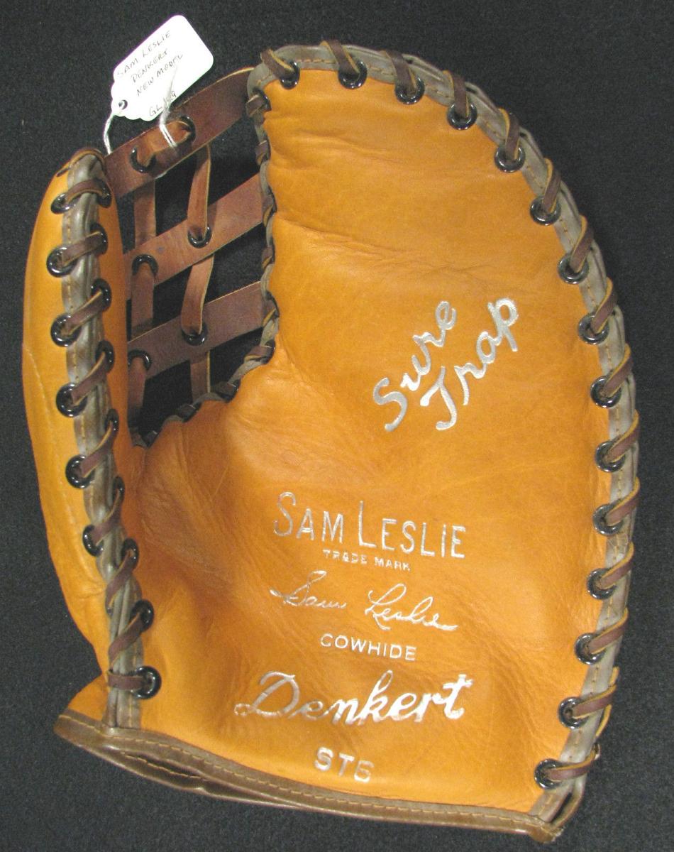 A Denkert "Sam Leslie" base mitt with a pretty cool web sold for $165.