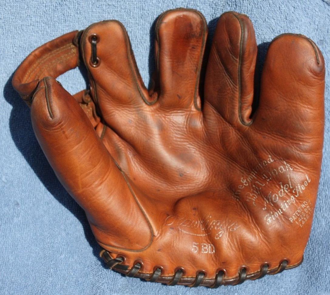 One of the nicer Rawlings "Bill Doak" gloves sold for a reasonable $115. It's an "Improved" model 5BD with a super black cloud patch and clever H-web design. Most of the silver stamping is intact.