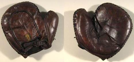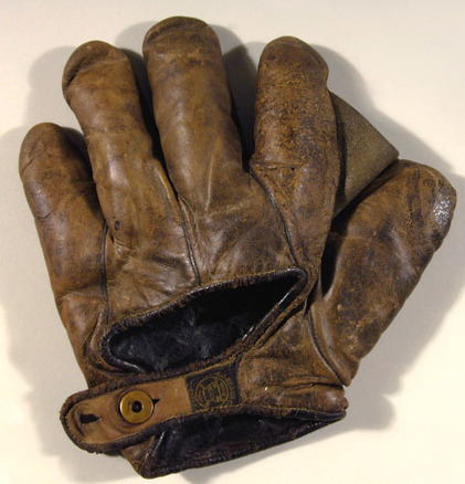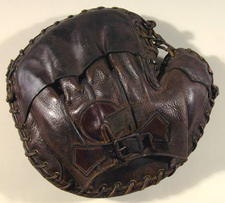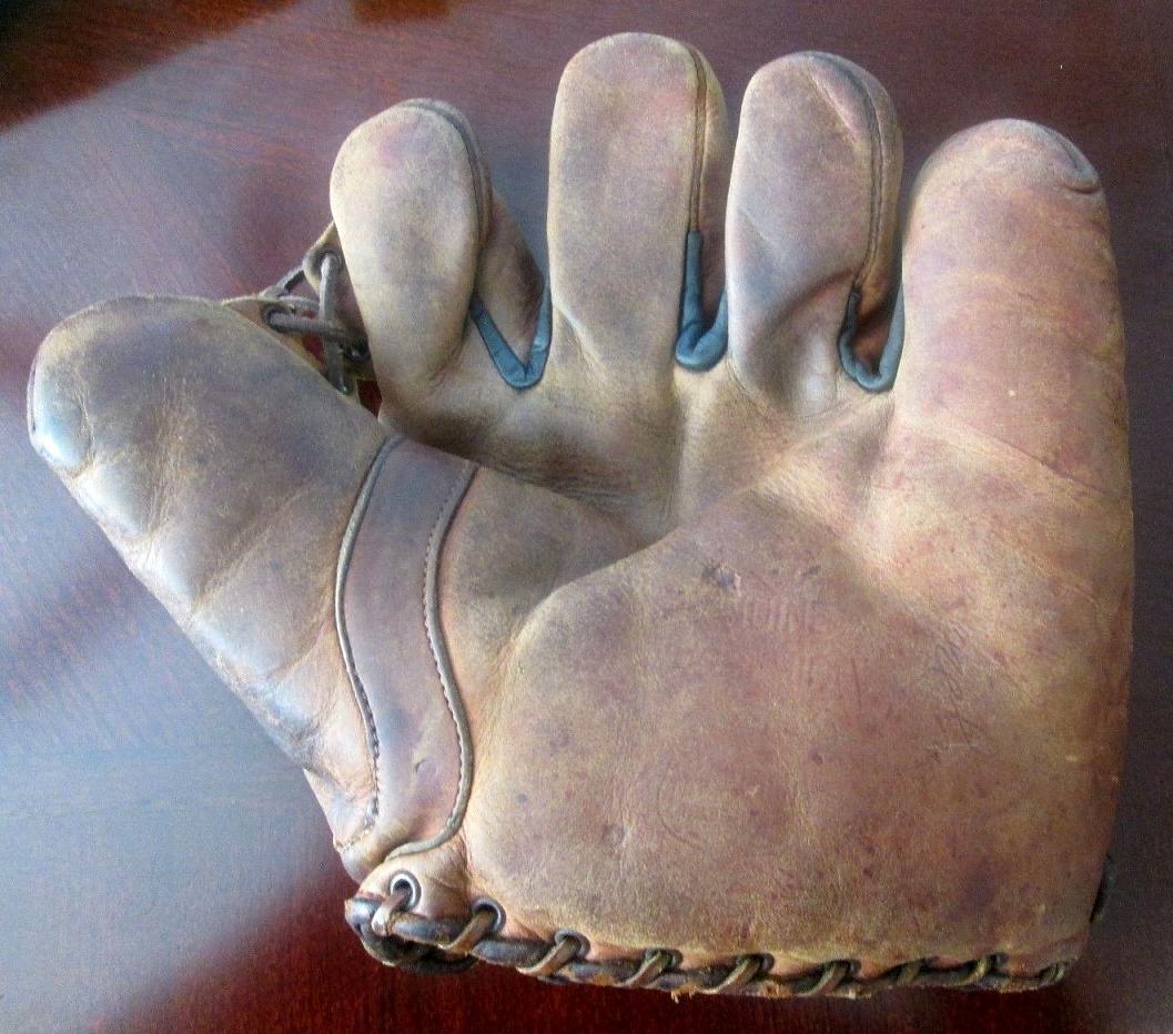 A 1920's D&M catchers mitt sold for $230. Trademark D&M wrist opening with circular leather reinforcement. Nice Decker finger guard on the top and thumb section.