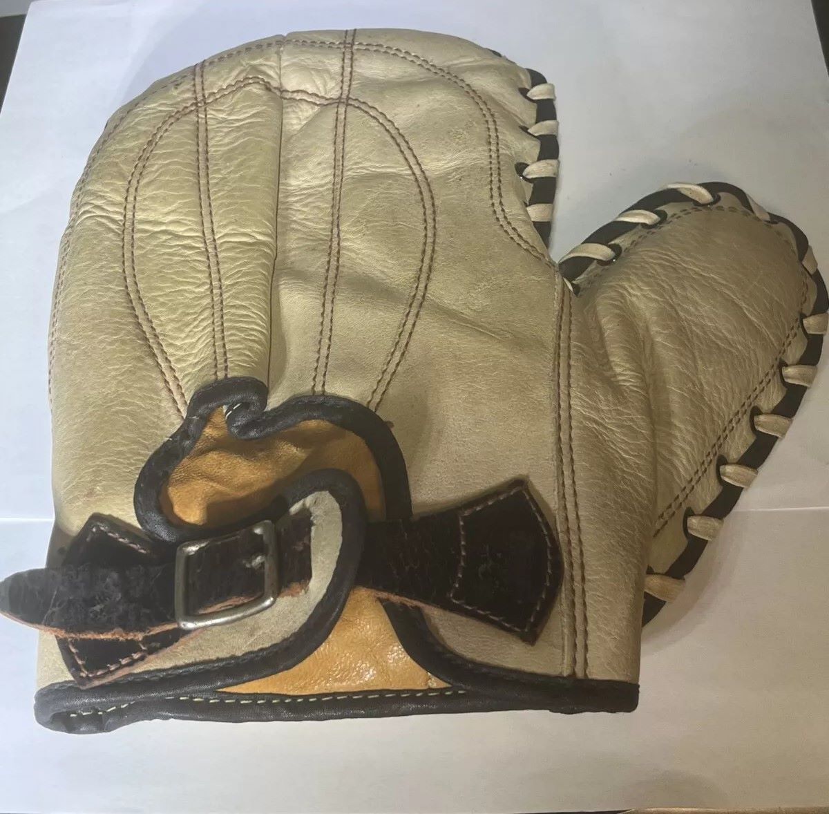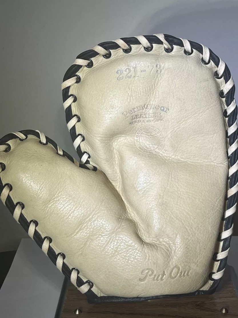 A mid 60s Rawlings PNB catchers mitt sold on a buy-it-now for 39.99. Unusual as the PNB is listed in the 1965-67 Rawlings catalogs as an Earl Battey model, all of which had the Big Wheel web, unlike this one which features a web similar to the HOH-X which debuted in the 1968 catalog.