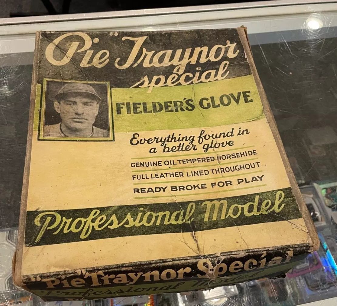 A 1930's Higgins Pie Traynor glove with original picture box sold for $750. Another case where the box is worth multiples of the glove.