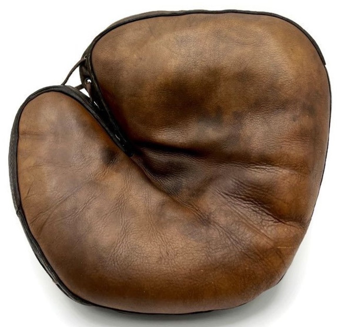 Antique Athlete sold this Edward Tryon mitt for $950. You are getting a lot for the money. It is a model 88 and was one of Tryon's best mitts at the time. It has a lot of cool features including patented lace heel, reinforced perimeter band, flat top design, arrow head wrist strap and patented grommet web. The mitt looks very close to what Stall & Dean were making circa 1908. To top it off, the mitt is in super condition with soft and supple leather and the rare blue Tryon tag.