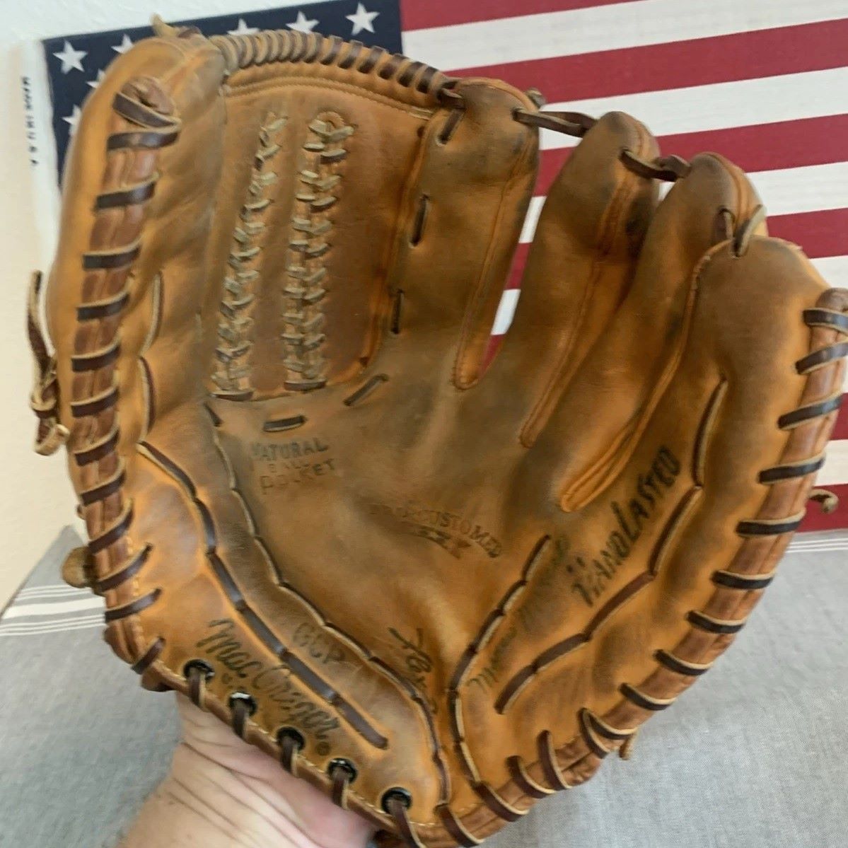 A 1960's MacGregor Brunswick model GCP glove sold for $175. A TOTL model. One thing about MacGregor gloves, they didn't skimp on the laces.