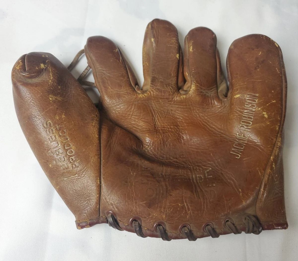 A 1950's Peerless Mfg. Jackie Robinson glove sold for $158. Overall in pretty good condition.