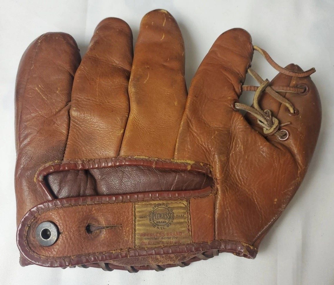 A 1920's Reach white leather sewn web glove sold for $240. Overall excellent condition.