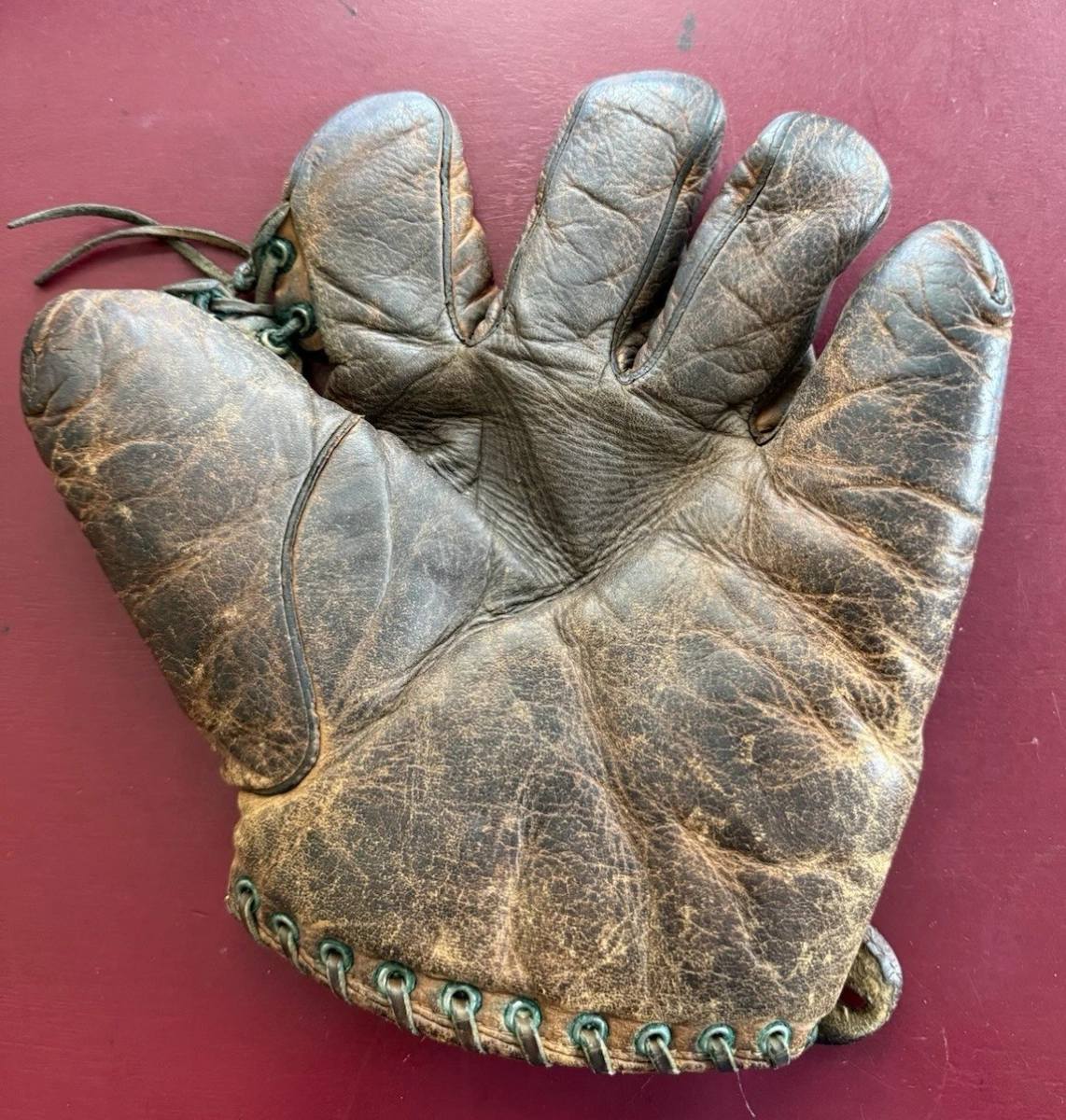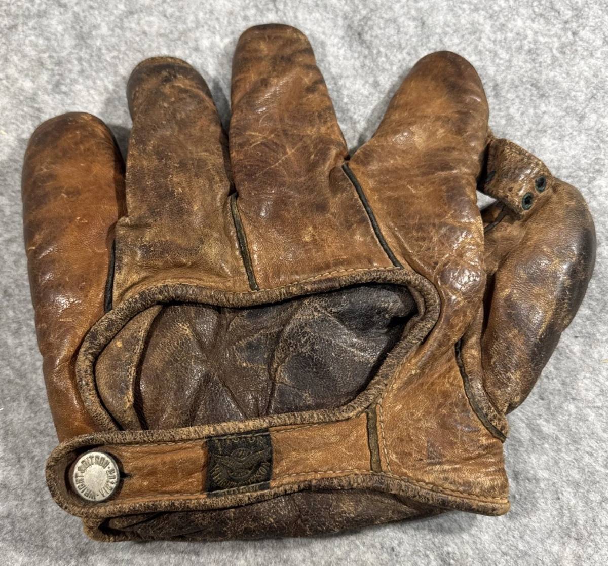 A 1924 Victor, Wright & Ditson model FW "Muny League" glove sold for $75. A real solid example. Nice factory stamps on the heel and a super cloth patch. I like the adjustable sewn web.