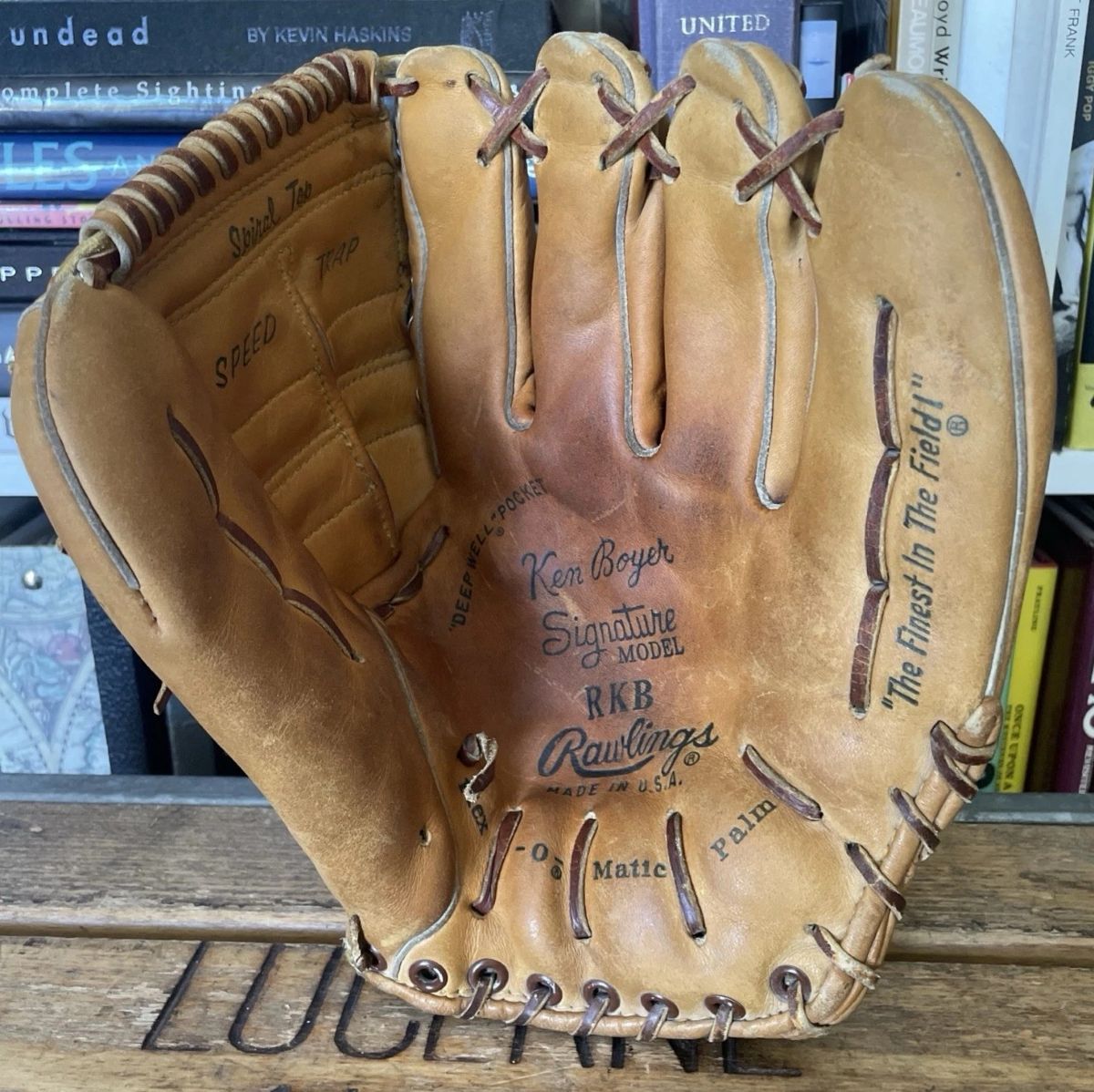A 1960's Rawlings Ken Boyer model RKB glove sold for $249. A rare glove. Instead of the Trapeze models, This one is a conventional glove in pretty nice condition.