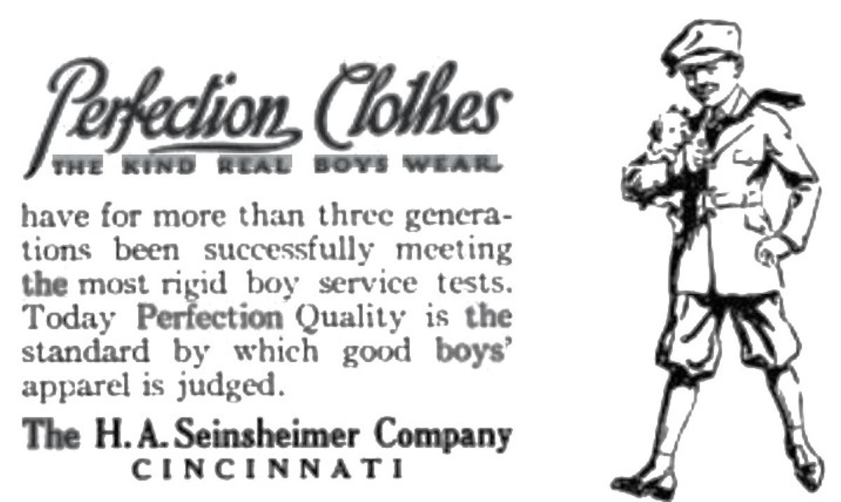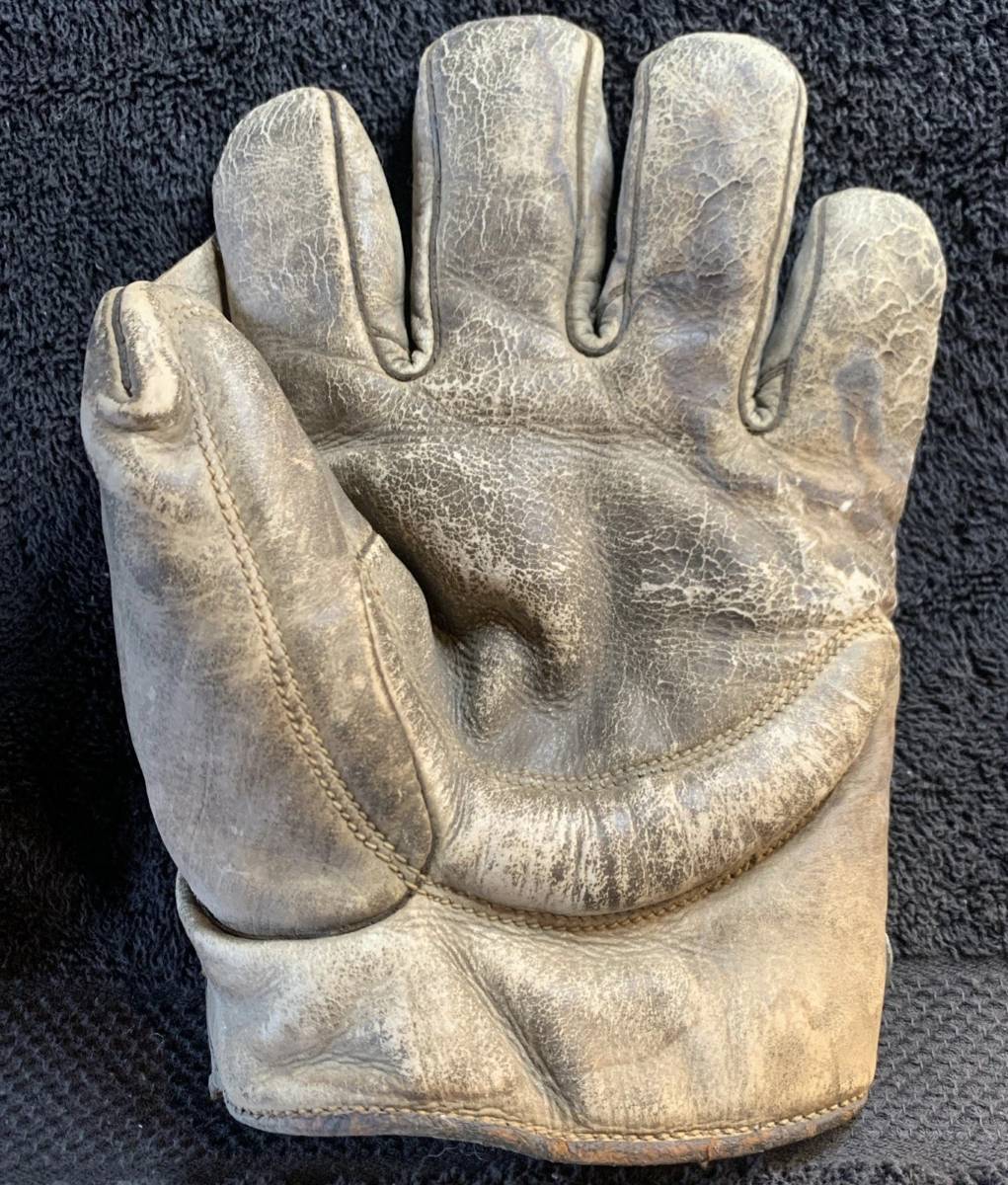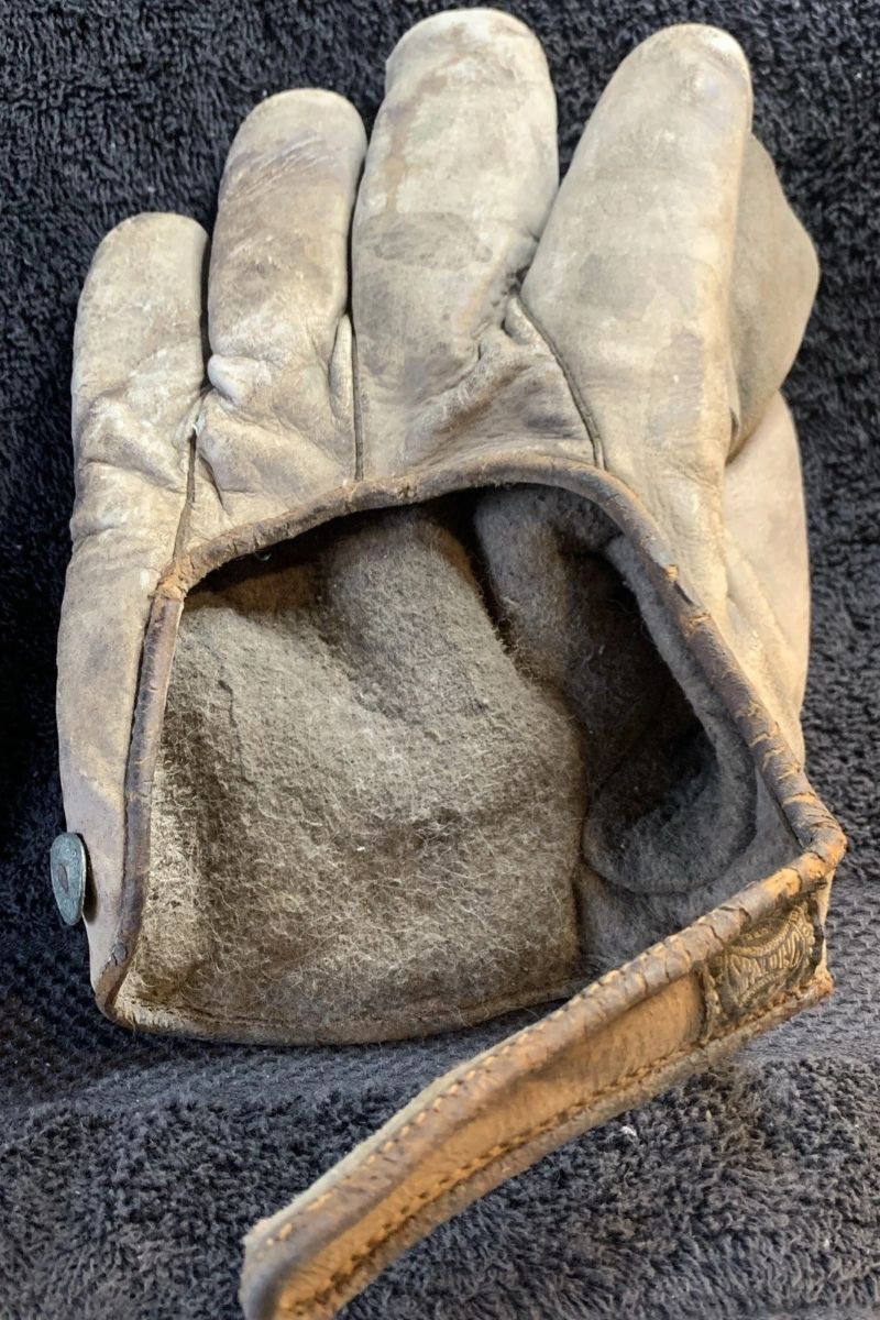 An obscure little glove from the 1920's. It was sold by the H.A Seinsheimer Co. out of Cincinnati. They were a children's clothing manufacturer. "Perfection Clothes" was their trademark and "The Kind Real Boys Wear" was their slogan. That is stamped on the face of the glove. It slod for $179.