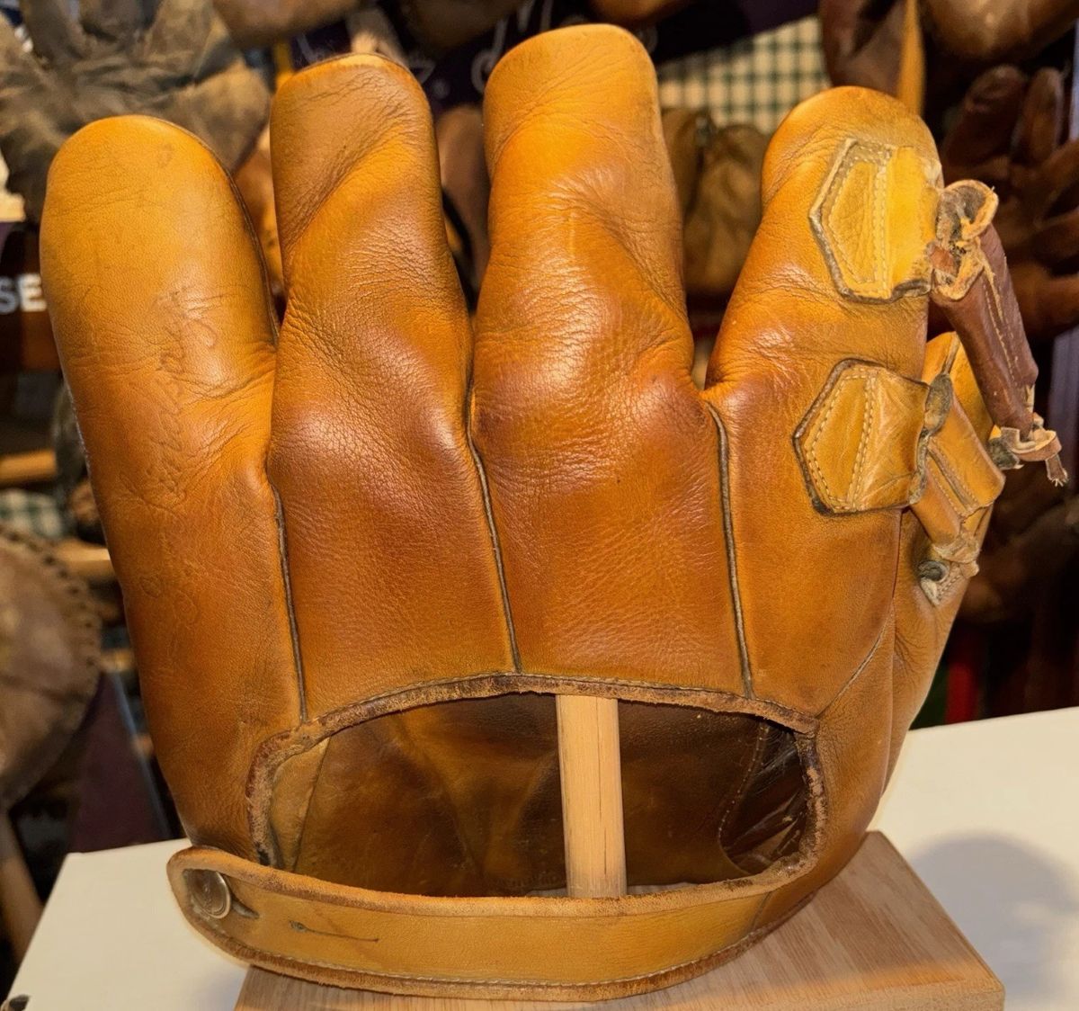 A 1930's Wilson Rogers Hornsby three finger model glove sold for $500. One of the more popular gloves for collectors. It's in decent shape.