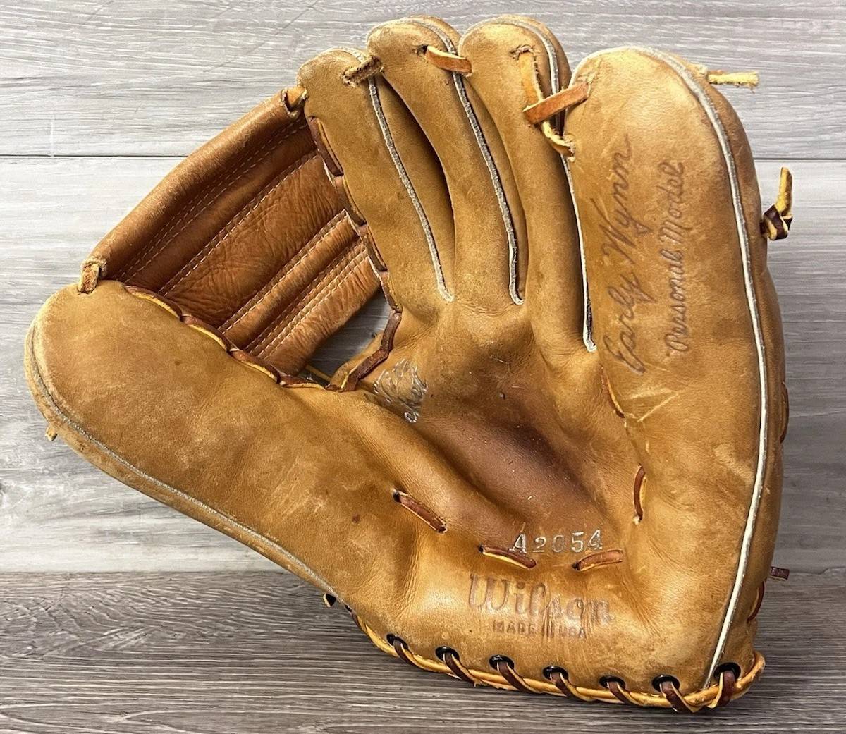 A 1957 Wilson Early Wynn PM model 2054 glove sold for $39. very little playing time on this TOTL glove. Some busted laces on the web.