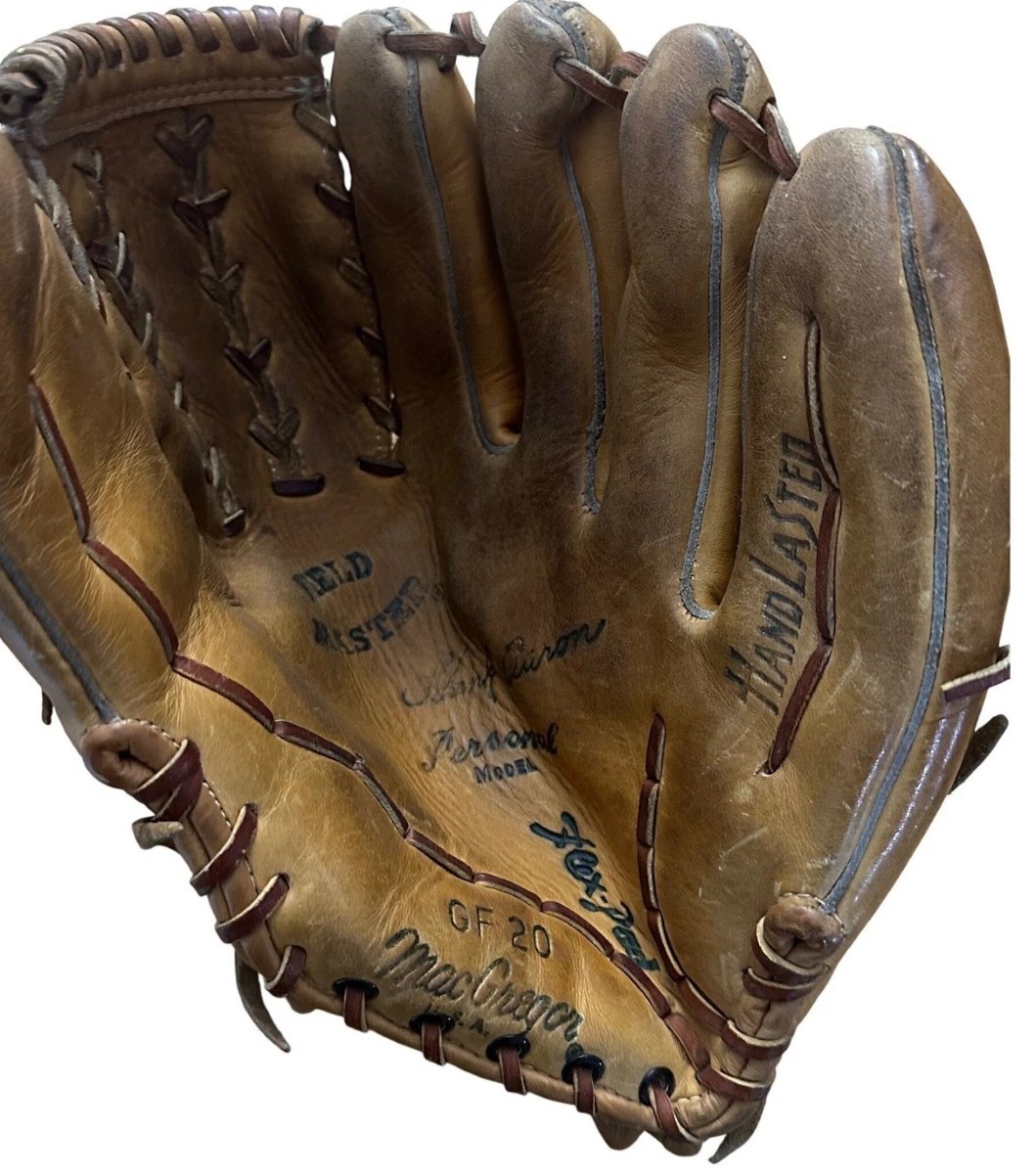 A circa 1970 MacGregor Hank Aaron model GF20 glove sold for $89. A popular collector glove. It features the last iteration of the "Fieldmaster Web". A pretty stylish glove in super condition.