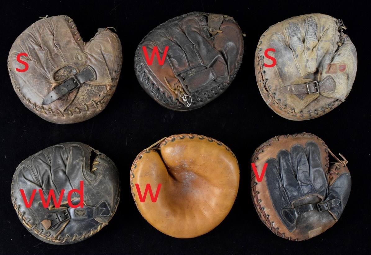 A group of mitts I missed from a previous auction. 2 Wilson models, 2 Spalding, a Victor Wright & Ditson and a Victor model. One of the Spalding models has a Knights of Columbus tag. The Victor mitt, lower right looks to be in fantastic condition. The lot sold for $584.