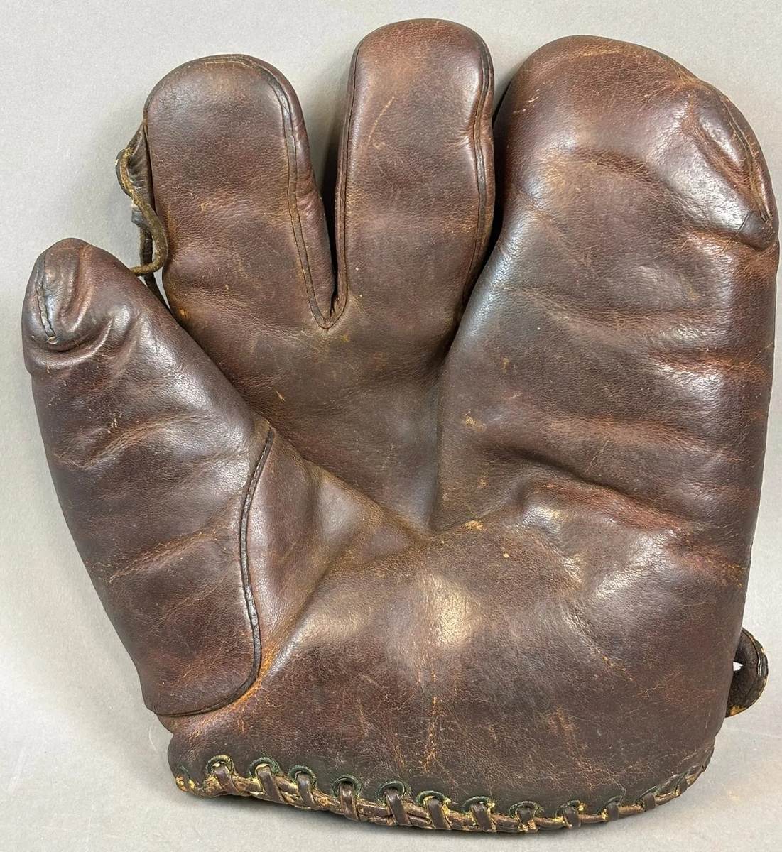 Another fingerless glove sold on ebay This one is a Spalding "Amateur" model. It was a newly patented design in 1890 that simplified the construction of throwing gloves for catchers. The glove has some wear an tear and a repair. It solad for $4897.