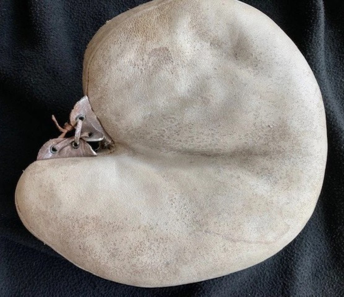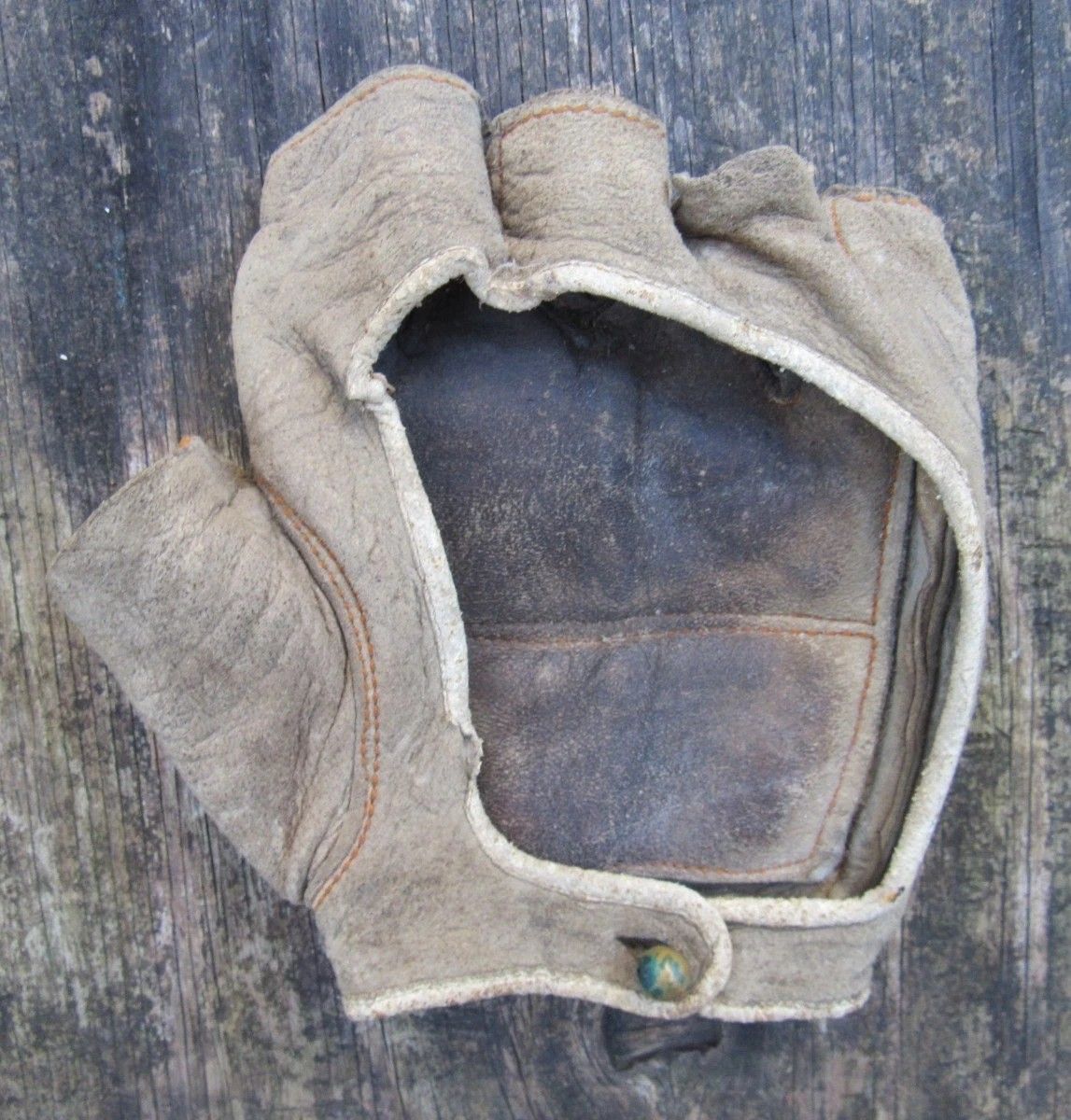 A circa 1890 fingerless glove sold for $7876. It's in great shape. A well built all leather model. The sewn padding on the front has a unique design in the way it follows the shortened finger stalls. Nothing like it in JD's gallery.