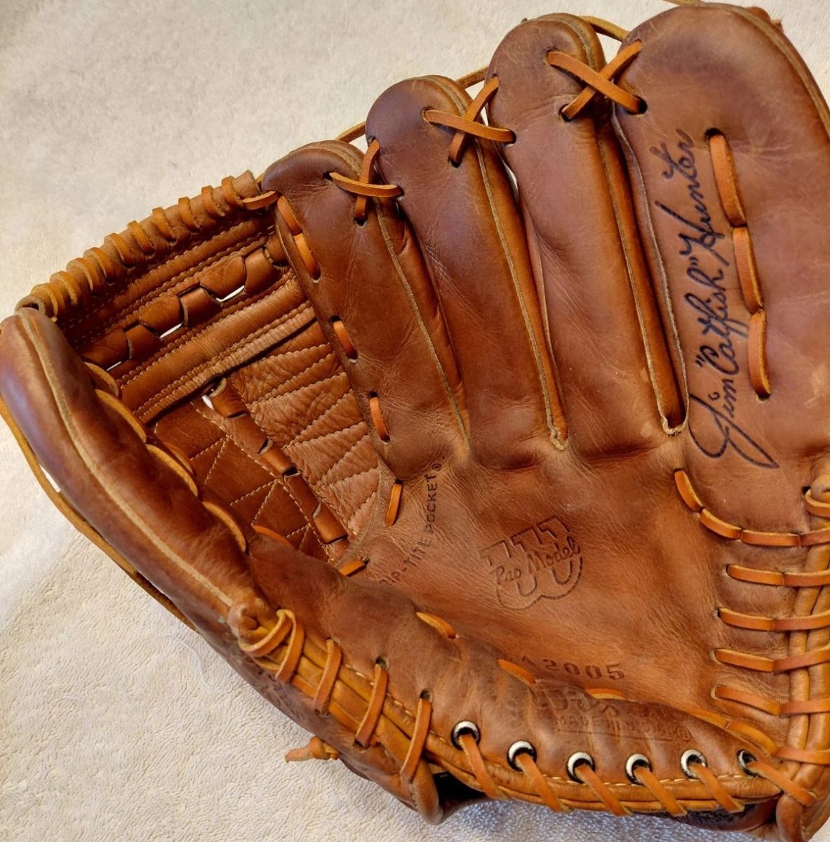 A circa 1970 wilson Catfish Hunter model 2005 glove sold for $150. It's in super condition.